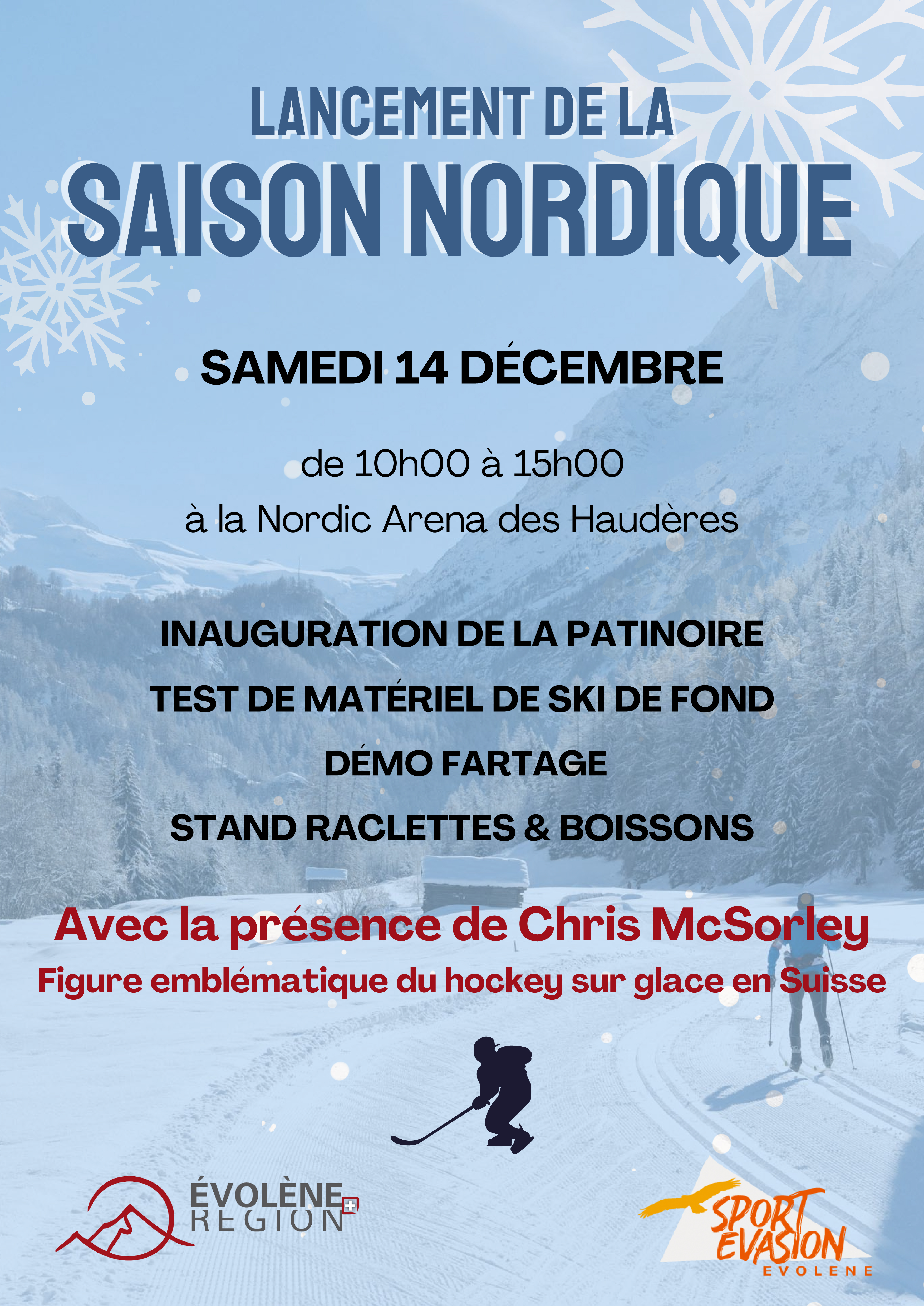 L'ouverture de la saison nordique aura lieu le le 14 décembre 2024 aux Haudères.
